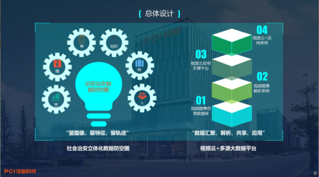 视频云+的总体设计围绕社会治安立体化数据防控圈进行设计,以“人、地、物、事、组织、情”六大要素为核心,构建视频云+多元大数据平台。
